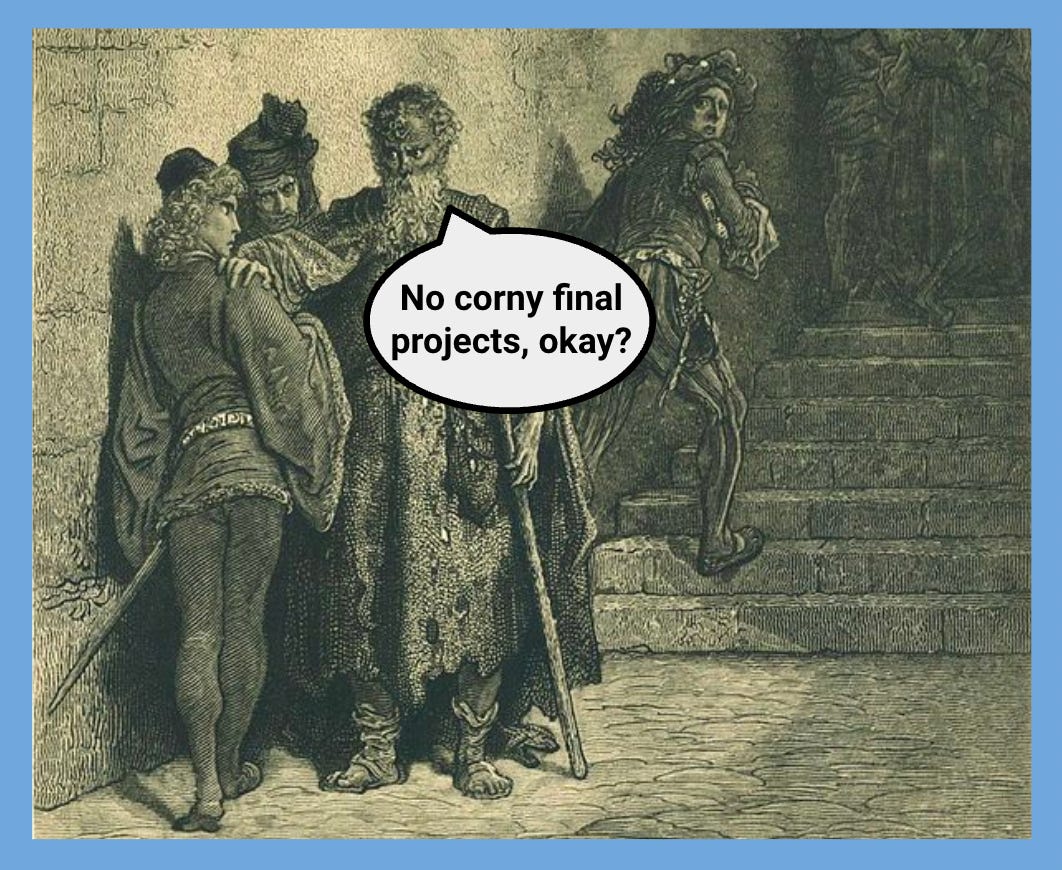 Mariner often leads to wrap-up assignments that are corny (e.g. “Write about the thing that’s an albatross around your neck” or an acrostic poem) or too much of a stretch to relate to the text (e.g. “Research sea shanties and report your findings.”).