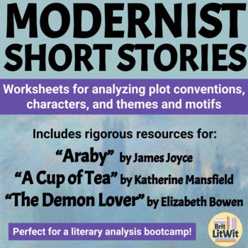 For worksheets, extended thinking questions, and creative assignments that will make teaching Modernist short stories a breeze, check out my bundle on TpT! Resources are available for each story individually too.